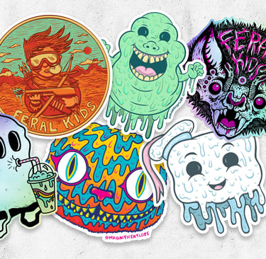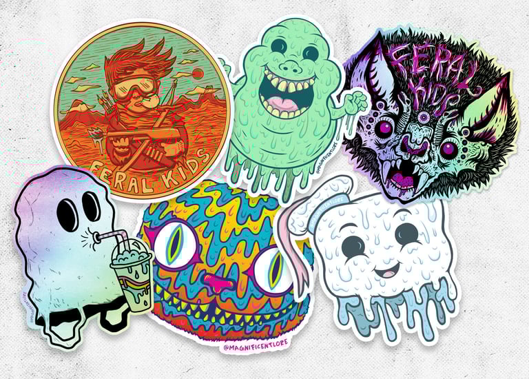 Feral Kids stickers featuring art by Nick Prevas & Pedro Mule
