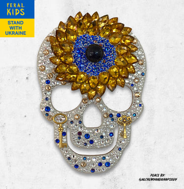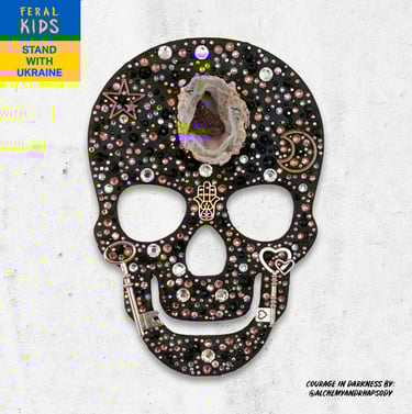 Melissa donated 3 of her original Crystal Skulls titled Courage in Darkness (SOLD), Optimism & Peace, for our Ukraine Benefit.